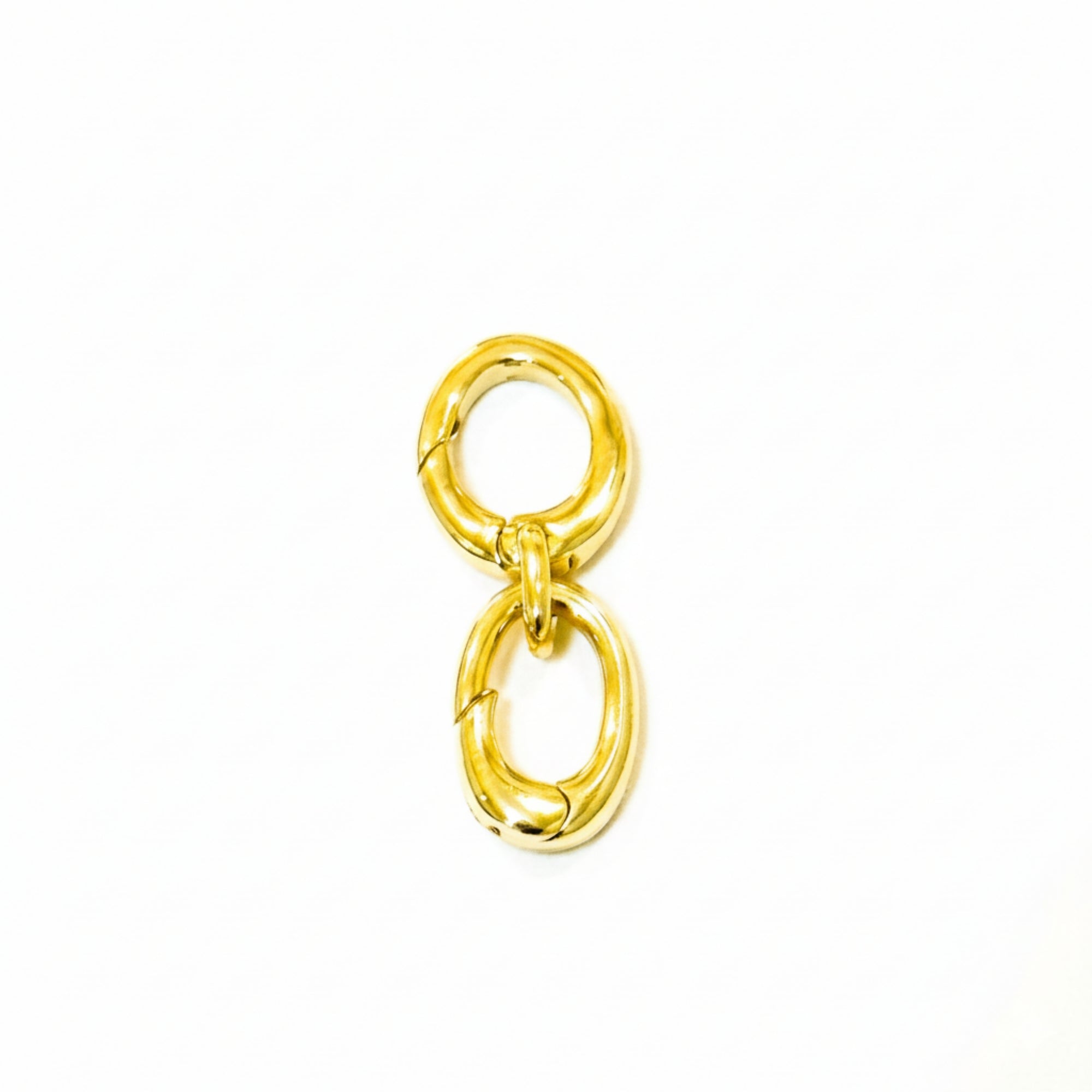 Add instant movement and sophistication to your stack. This unique, articulated connector features a double-link design that creates a slight drop, elegantly separating your base chain from your charms. It gives your curated "mood" a little extra swing.