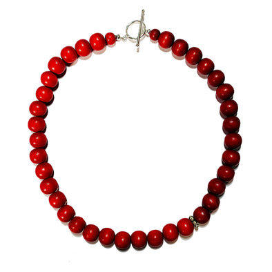 Carnelian, Coral and Czech Fire Polished Glass Necklace