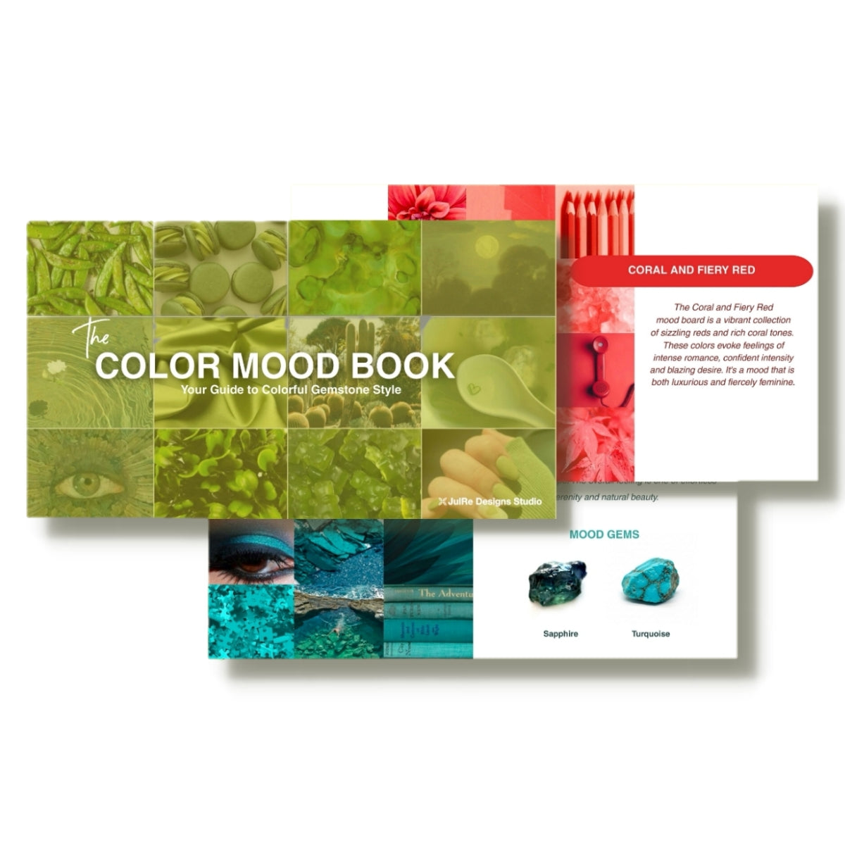 This digital Mood Book takes away the guesswork. Created by jewelry designer and color consultant, Juliet, this gorgeous digital guide is a visual feast of rich, saturated color combinations provides the color principles you need to wear gemstones with confidence.